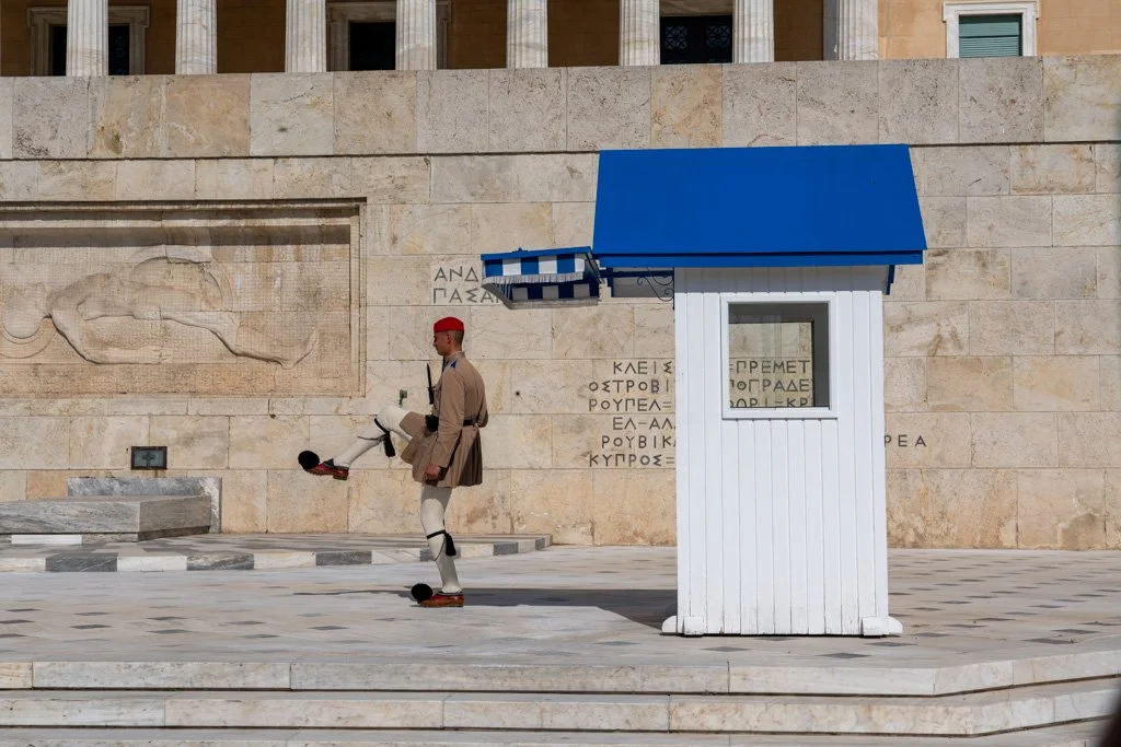 Before checking out of Ermou 6 our great accomodation we headed back to the Tomb of the unknown soldier to view the Evzones in traditional uniform completing the 11am changeover. With crowds growing in anticipation we positioned ourselves for their march into the square captured our photos and were off.