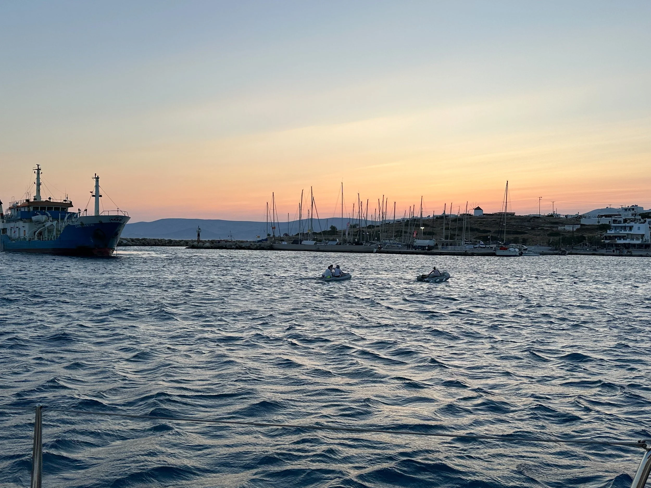 When we arrived into the anchorage of Koufonisi the anchorage was congested with small and large boats. As sunset descended we thought the anchorage would settle down, but we were certainly wrong, as we suddenly had a very large ferry maneuvering to park on the outer wall. If it felt close for us then we certainly would not have wanted to be the smaller boats that were even closer. Throw in a dingy engine failure and their rescue by another dinghy as they drifted helplessly towards an incoming tanker. This anchorage was certainly not relaxing.